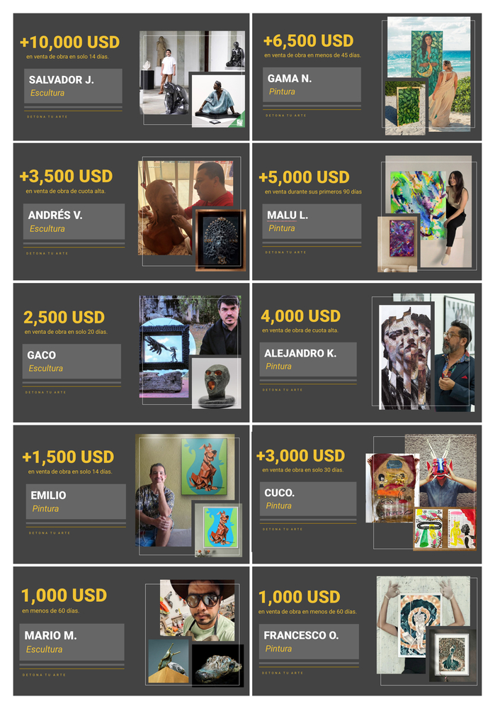 Mi metodología y acompañamiento personalizado está diseñado para artistas serios y comprometidos que realizan Pintura, Escultura, Tatuaje o Foto con valor arriba de los $400 usd y estén buscando impulsar sus ventas por su propia cuenta sin depender de otros.